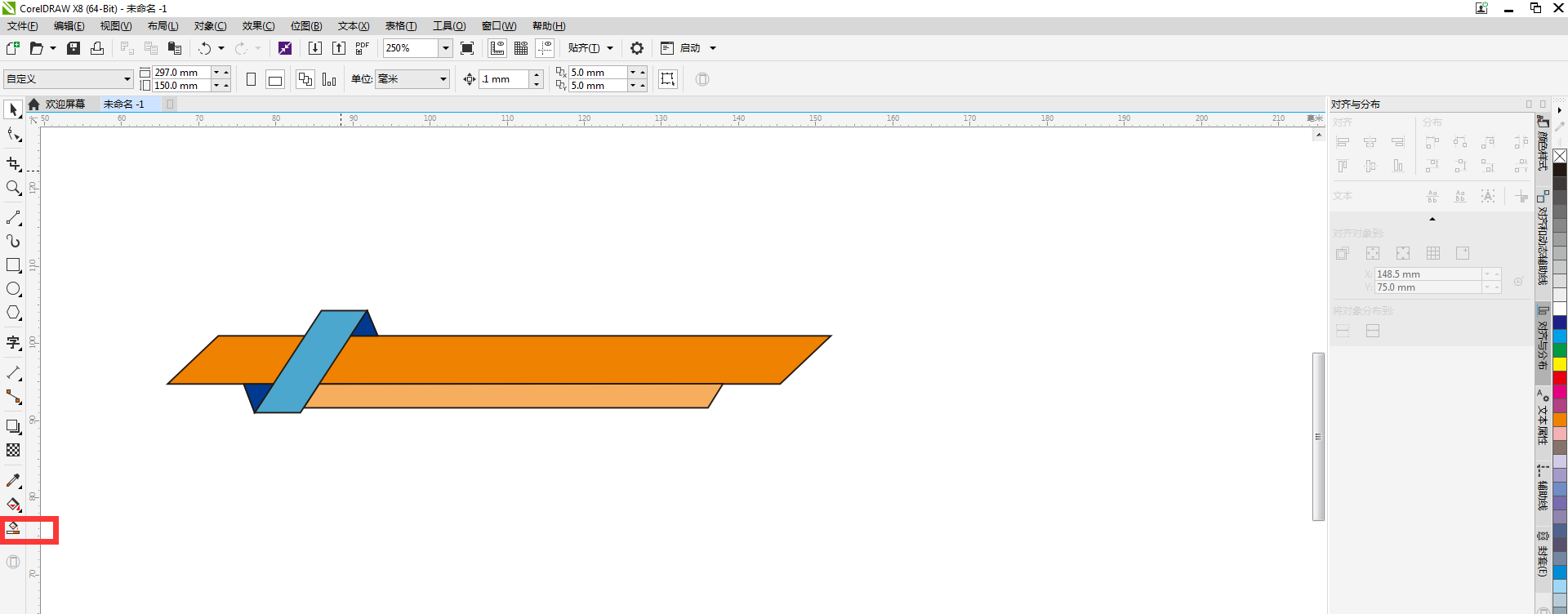 调整图形的位置,框选所有图形按ctrl+q键转曲,点击形状工具调整图形,再用两点线工具连接图形,填充颜色,再点击智能填充工具给图形填充颜色。