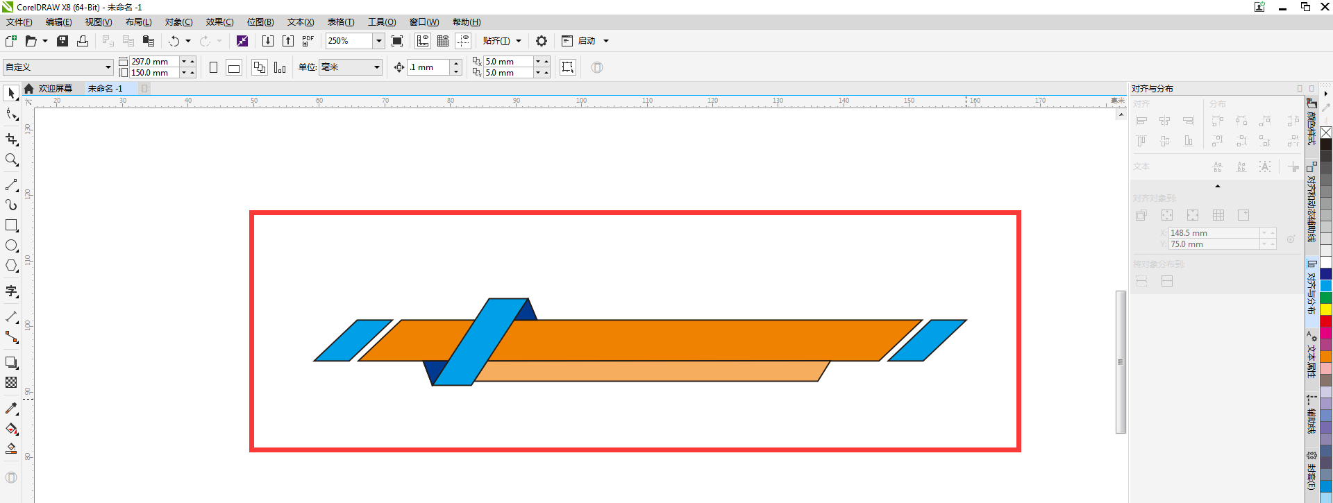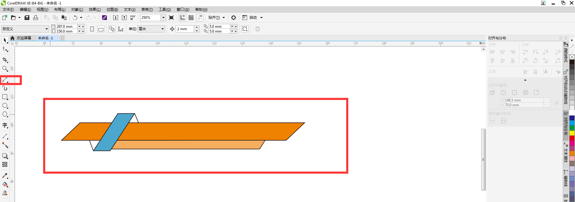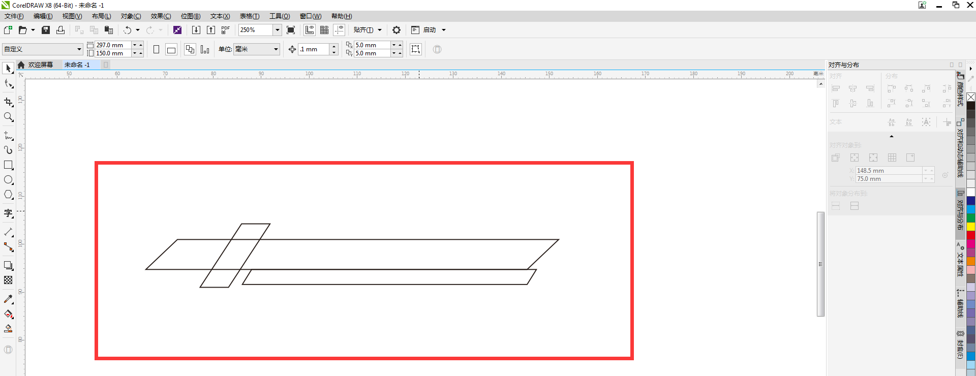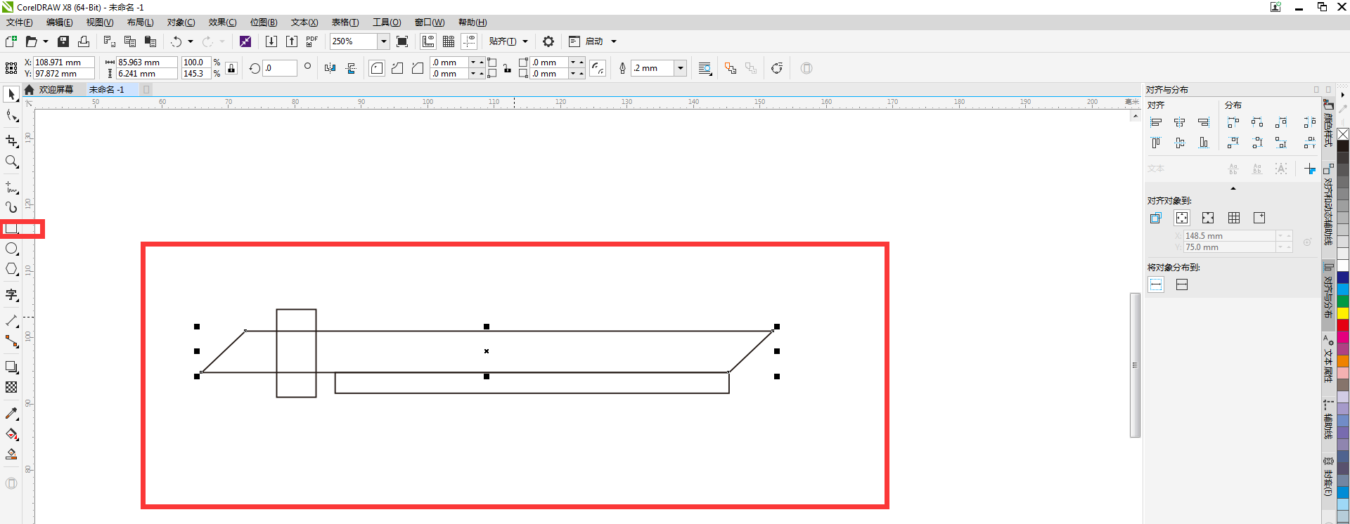 打开cdr软件,新建文档,点击矩形工具绘制一个矩形,按住ctrl键翻转复制,再改变复制矩形的尺寸。