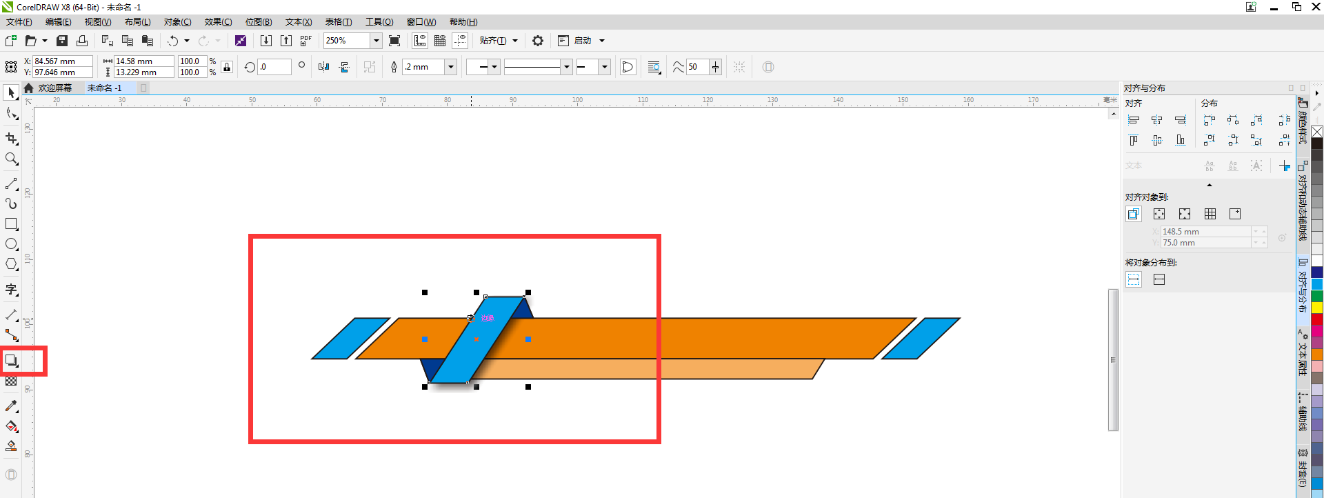 再绘制一个矩形,点击长矩形斜切,再把其他两个矩形也斜切一下。