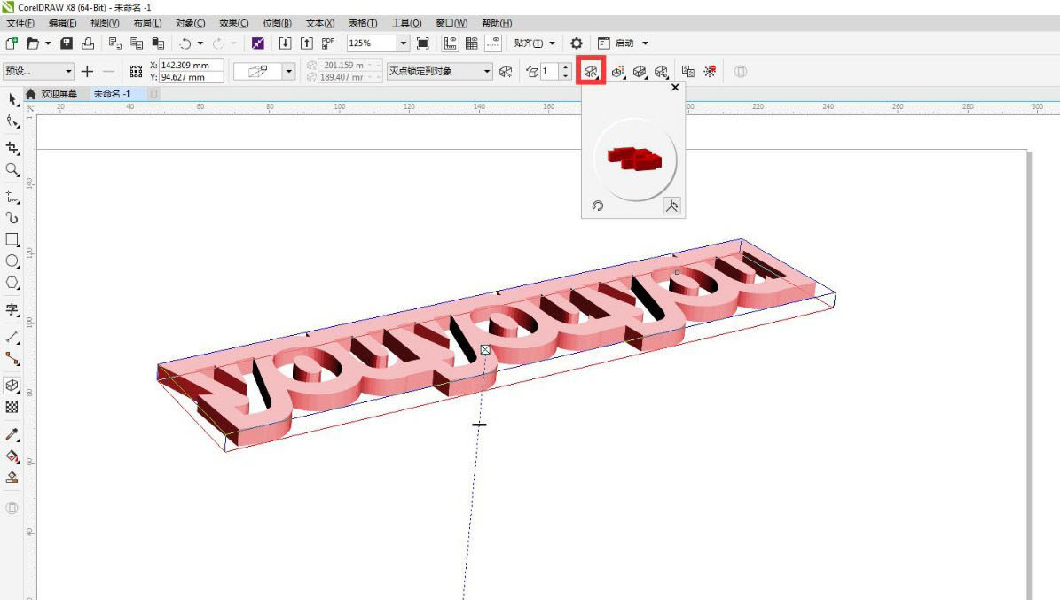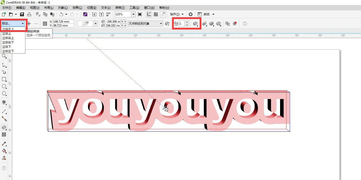 再点击立体化工具,调整预设和深度,再调整旋转角度,这样就做出一个立体文字图形了。