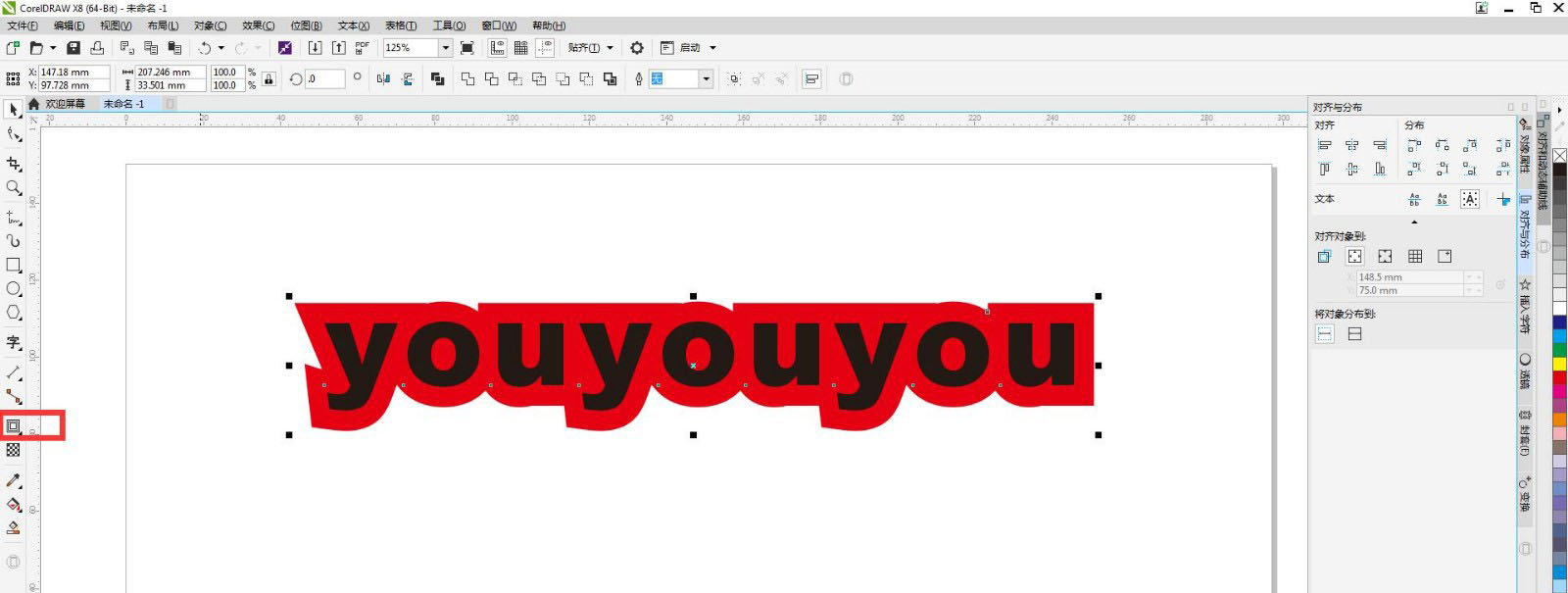 点击轮廓工具给文字添加一个外轮廓,按ctrl+k键拆分,把两个图形框选简化,点击里面的文字删除掉,留下外轮廓,点击效果添加透视,调整角度。