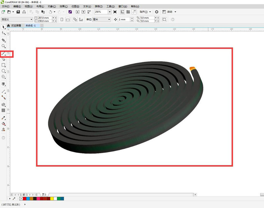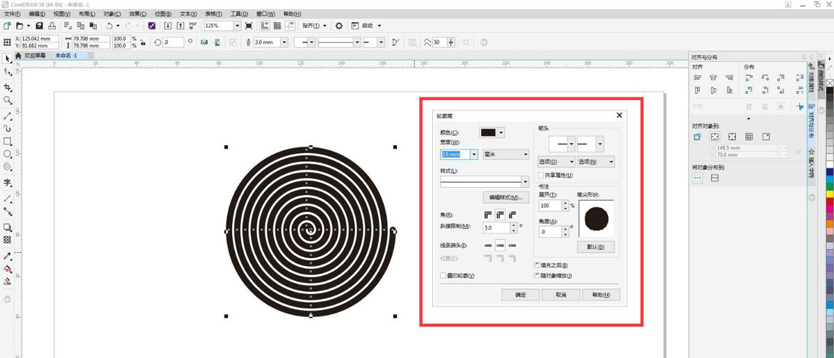 打开cdr键,新建文档,点击螺纹工具绘制一个螺纹图形,按f12加粗描边。
