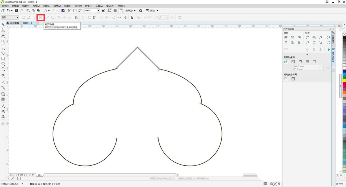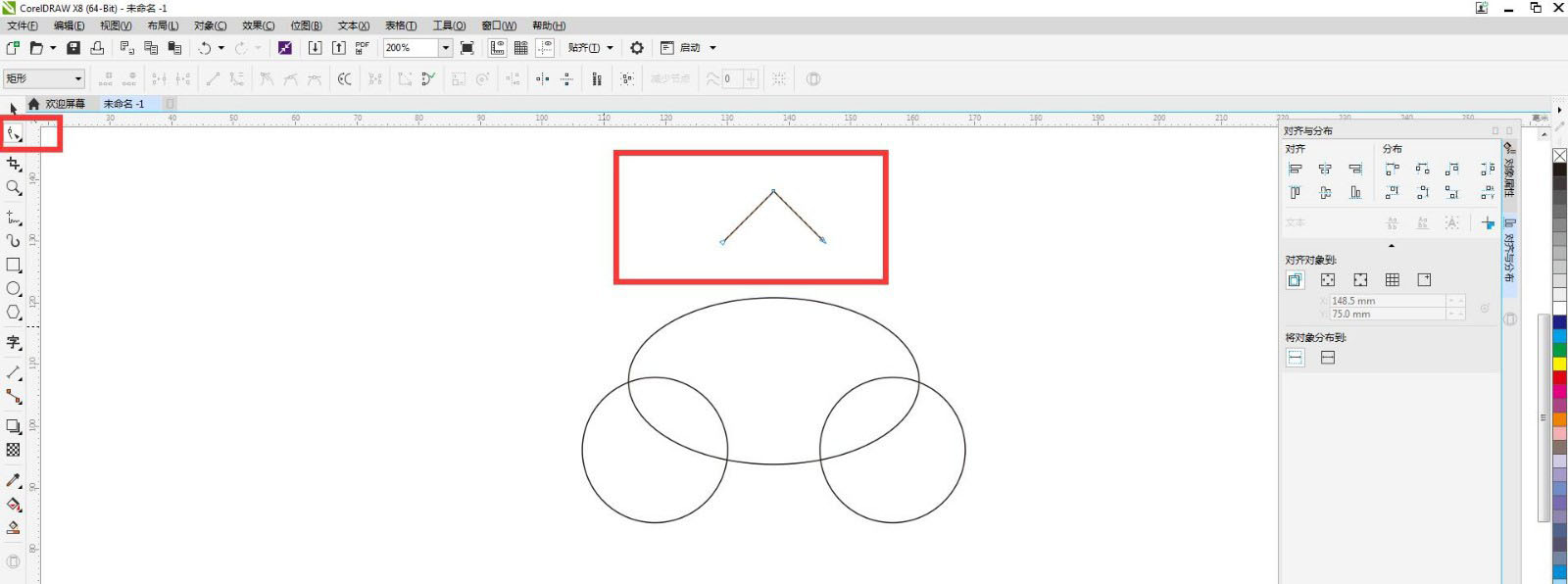 对齐图形,框选全部图形,点击合并,点击形状工具,断开曲线,再删除曲线。