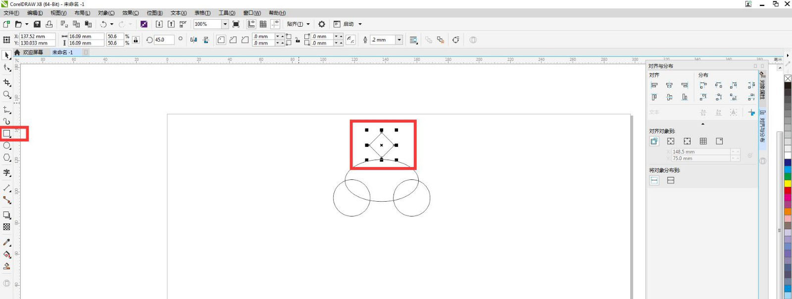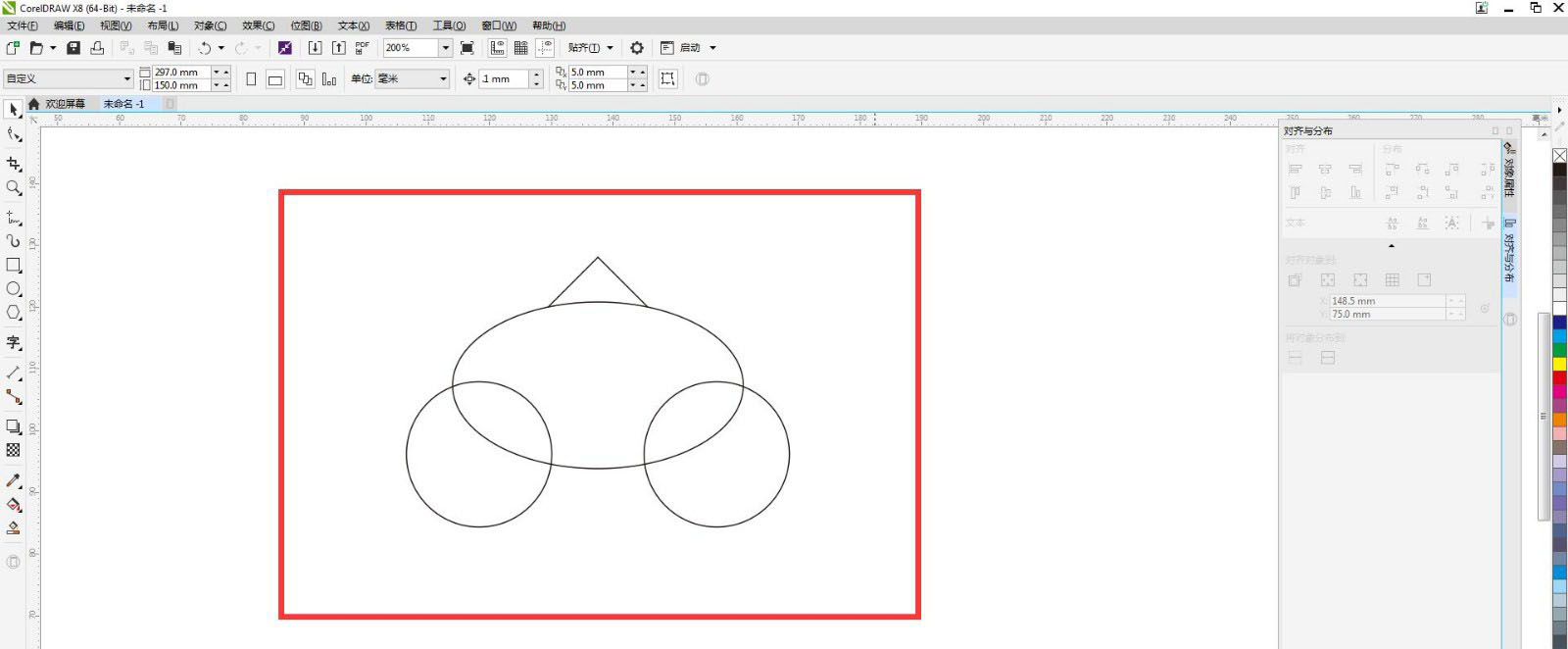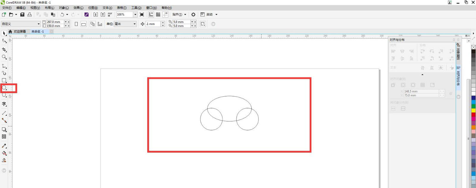 打开cdr软件,新建文档,点击椭圆工具绘制一个椭圆,按住ctrl键再绘制一个正圆,复制正圆并对齐圆。