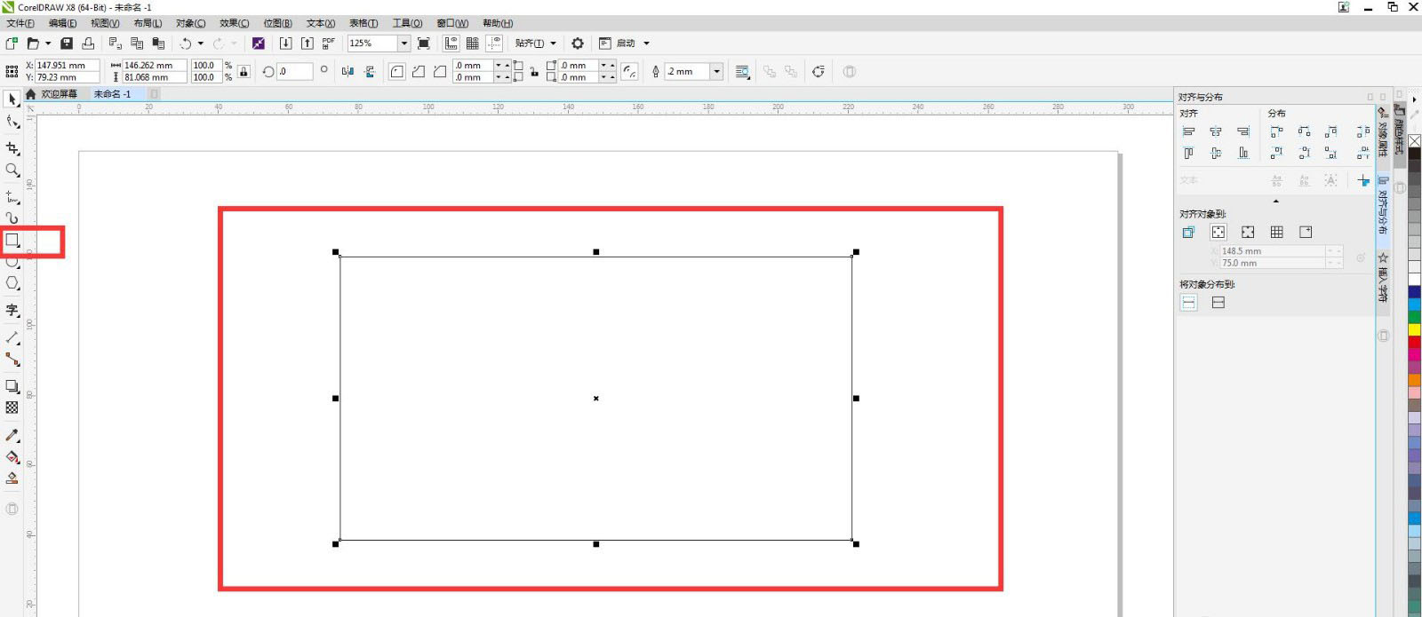 打开cdr软件,新建文档,点击矩形工具绘制一个矩形。