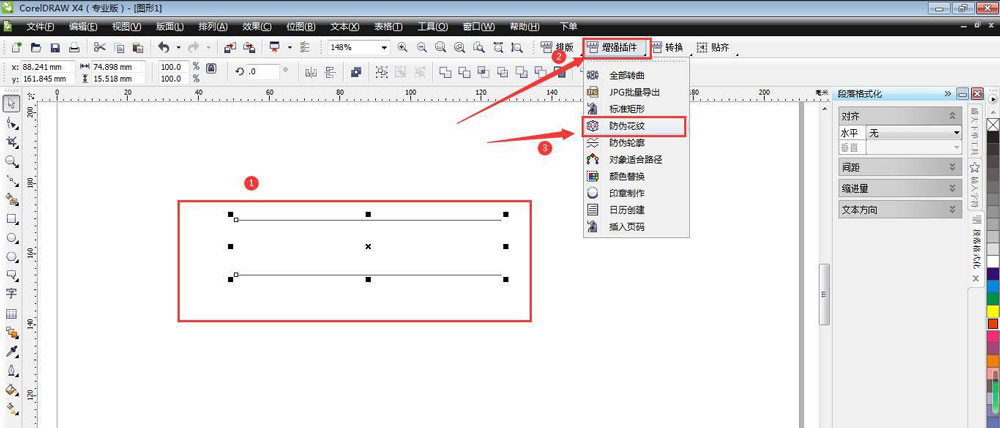 全选两条直线,执行“增强插件-防伪花纹”。
