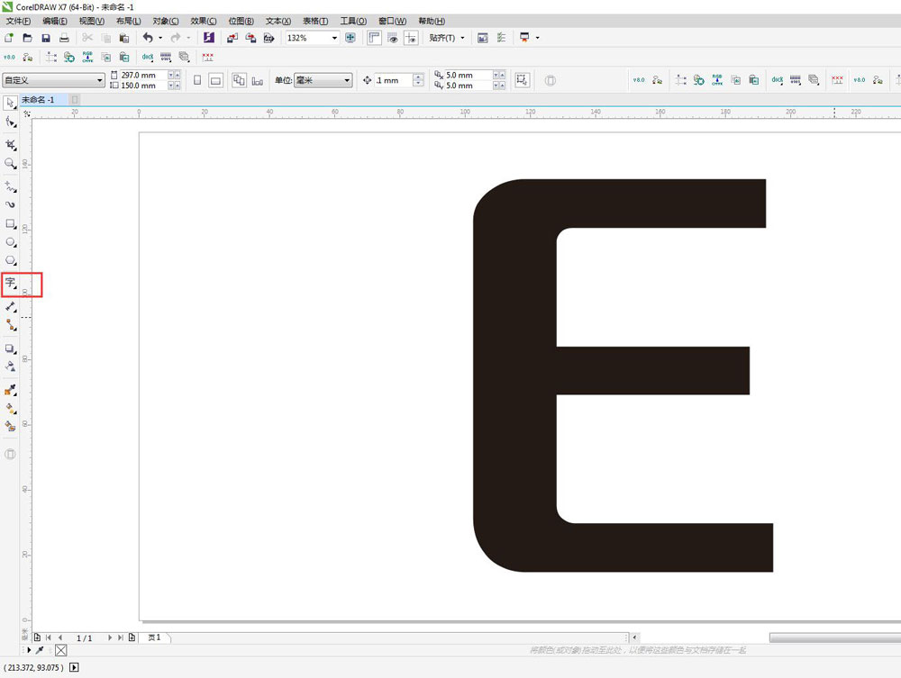打开cdr软件新建文档,点击文字工具输入文字并调整大小和颜色。