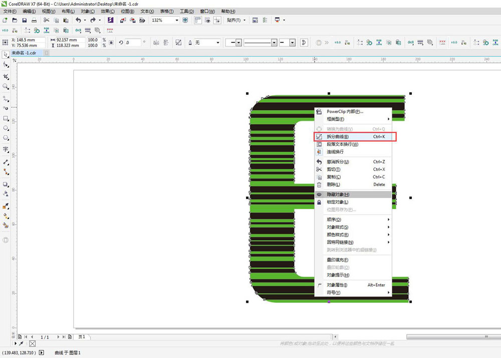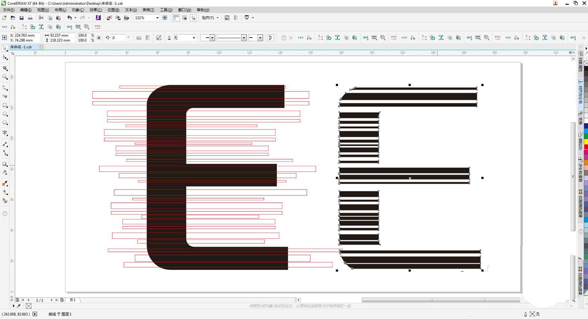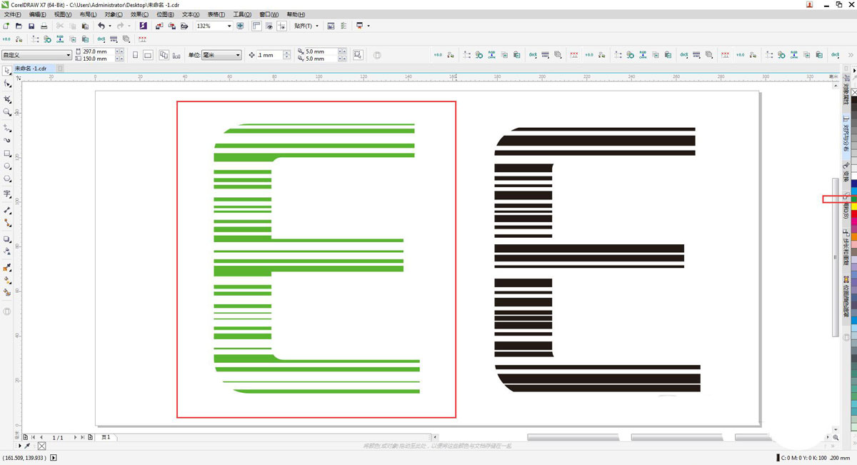 点击矩形工具在文字上绘制几个大小不一的矩形,选中文字按Ctrl+q转化为曲线,再选中所有的矩形与文字相交。