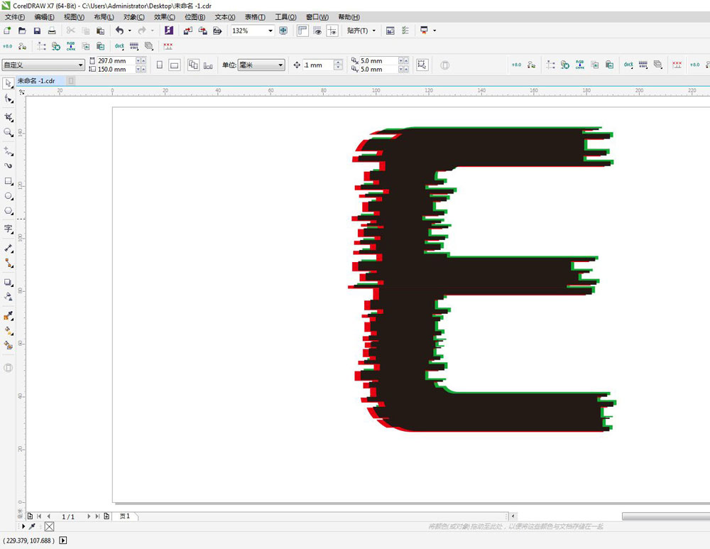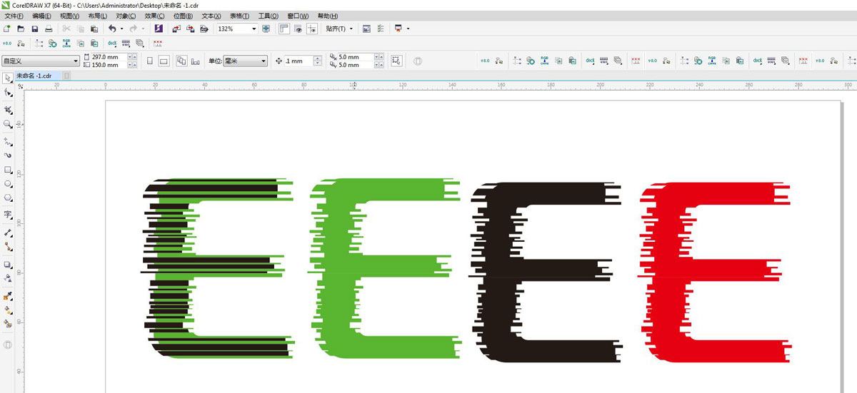 再选中所有图形向右拖动复制,再合并填充成绿色,再复制一个填充成黑色,一个填充成红色,然后再把它们组合起来,故障效果就做好了。