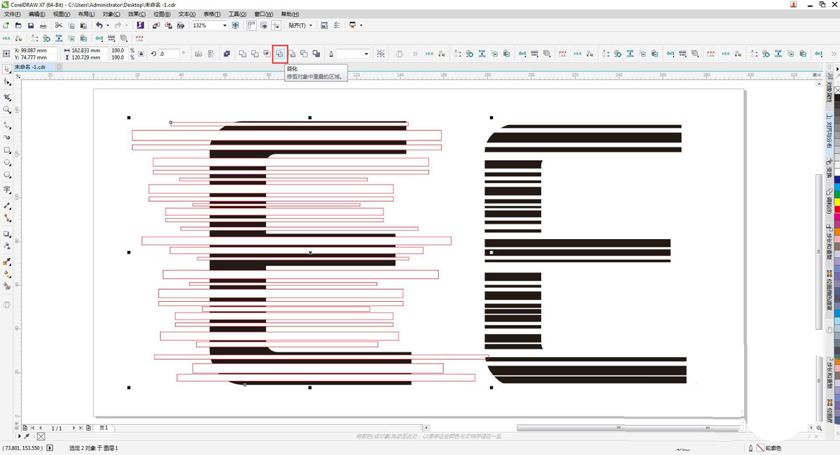 选中矩形和文字点击简化,再把矩形删除掉,把左边的文字填充成绿色。