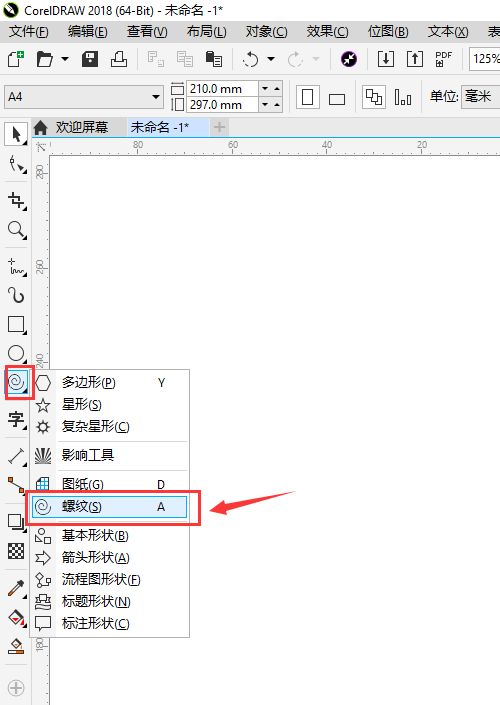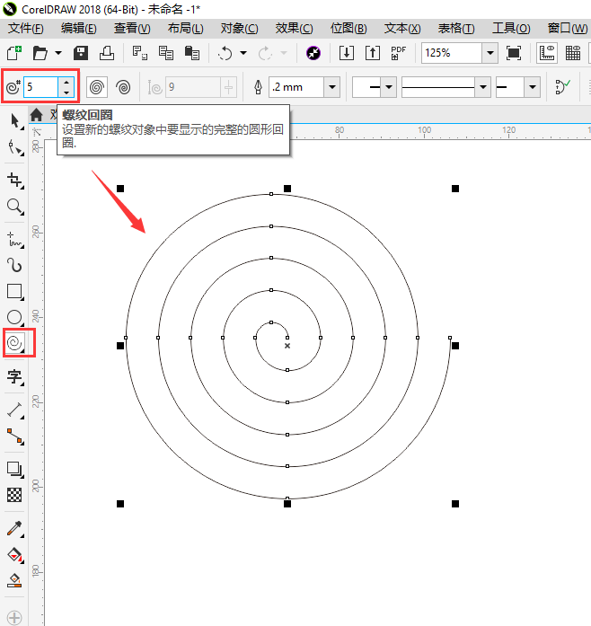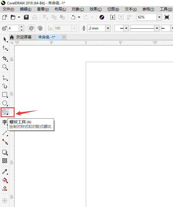 2、选择螺纹工具后按住鼠标左键在页面随意拖动,可以绘制出一个螺纹形状。