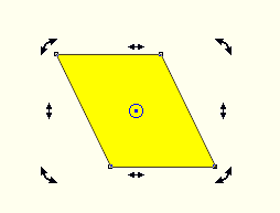 单击“选择工具”,点击两次需要倾斜的图形,当四周出现双箭头形状的控制点时,将光标移动到四周居中的控制点上,当光标变为左右单箭头时,按住鼠标左键进行拖动,松开鼠标后,图形就倾斜了。