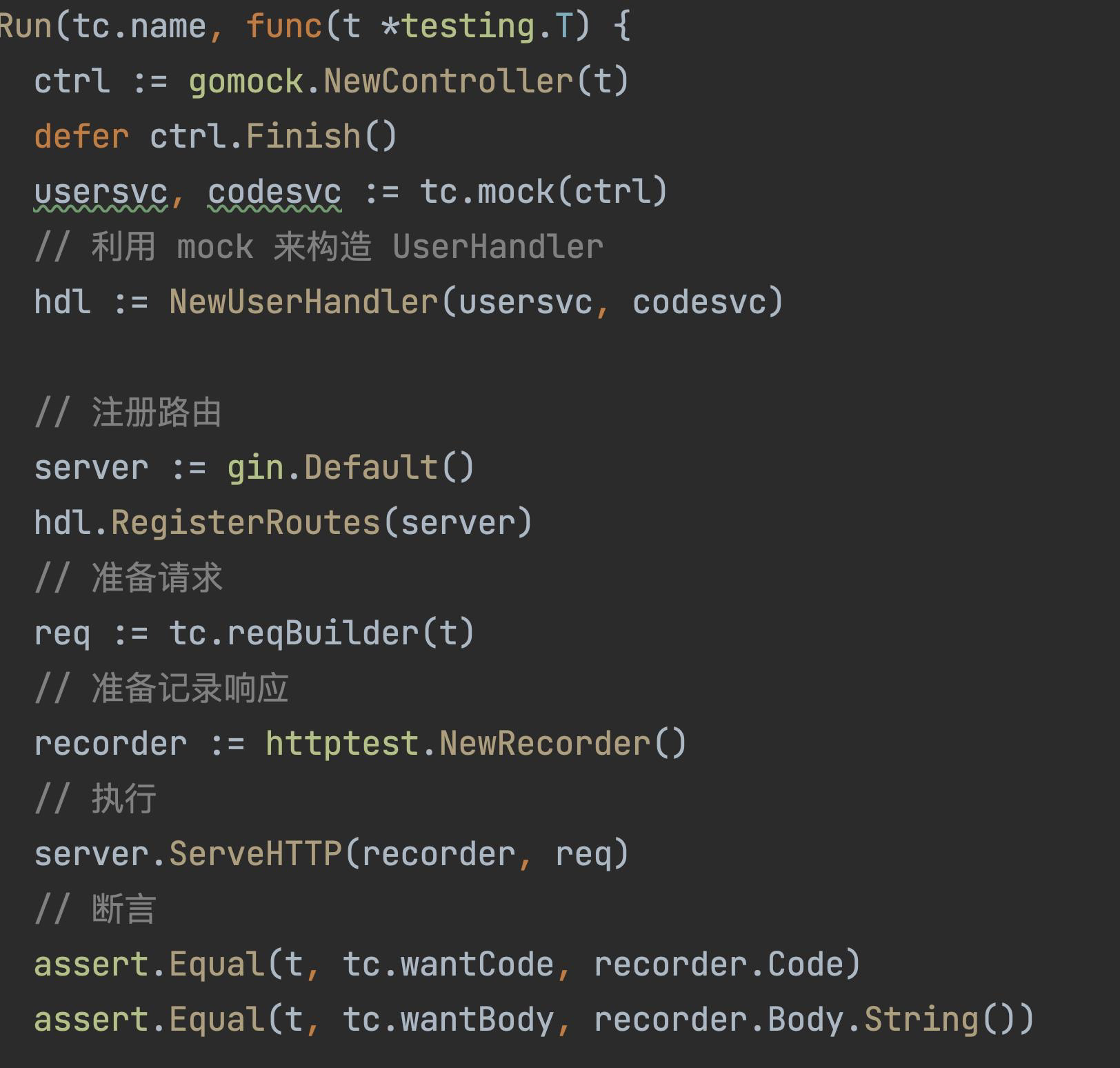 - 使用 mock 的服务初始化 UserHandler,并且注册路由。