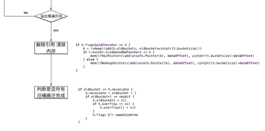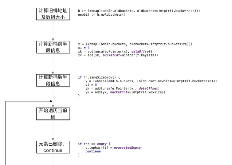 | y *bmap | 桶y表示与在旧桶时相同的位置+旧桶数组大小,即位于新桶后半段 |
