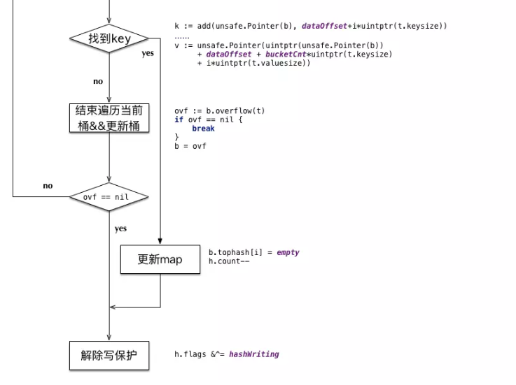 // returns key, if not find, returns nil func mapaccess1(t *maptype, h *hmap, key unsafe.Pointer) unsafe.Pointer // returns key and exist. if not find, returns nil, false func mapaccess2(t *maptype, h *hmap, key unsafe.Pointer) (unsafe.Pointer, bool) // returns both key and value. if not find, returns nil, nil func mapaccessK(t *maptype, h *hmap, key unsafe.Pointer) (unsafe.Pointer, unsafe.Pointer)