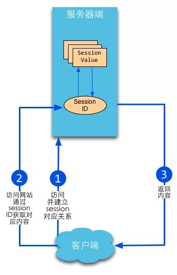 session可以通过cookie来完成,在客户端保存session id,而将用户的其他会话消息保存在服务端的session对象中,与此相对的,cookie需要将所有信息都保存在客户端,