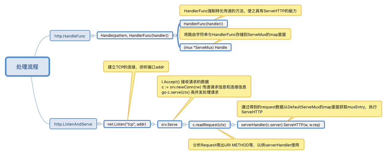我们顺着http.HandleFunc("/", response)方法顺着代码一直往上看。