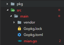 另外需要注意的是,使用dep管理包控制依赖的时候,如果我们需要新建目录,并编写自己的新的包名的时候,只需要在src下新建目录就可以了。这样做才能正确引入。