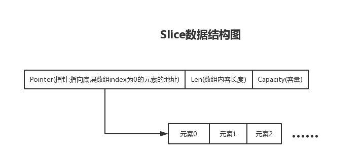 从数据结构图中可看出,Slice可以理解成结构体类型,包含底层数组首元素地址、数组len、容量三个字段,slice对象在参数传值过程中,把三个字段的值传递过去了,实际上changeSliceMember函数内slice在内存中的地址和main中的slice内存地址不一样,只是字段值是一样的,而第一个字段Pointer的值就是底层数组首元素地址,因此可以直接改变元素内容