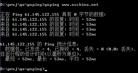 fmt.Printf("%s 的 Ping 统计信息:\n 数据包:已发送 = %d,已接收 = %d,丢失 = %d (%.1f%% 丢失),\n往返行程的估计时间(以毫秒为单位):\n 最短 = %dms,最长 = %dms,平均 = %.0fms\n",