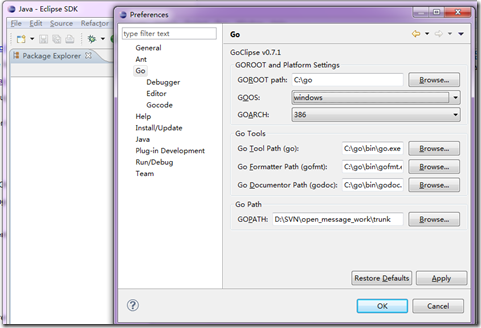 本文实例讲述了Go语言eclipse环境搭建的方法。分享给大家供大家参考,具体如下:
