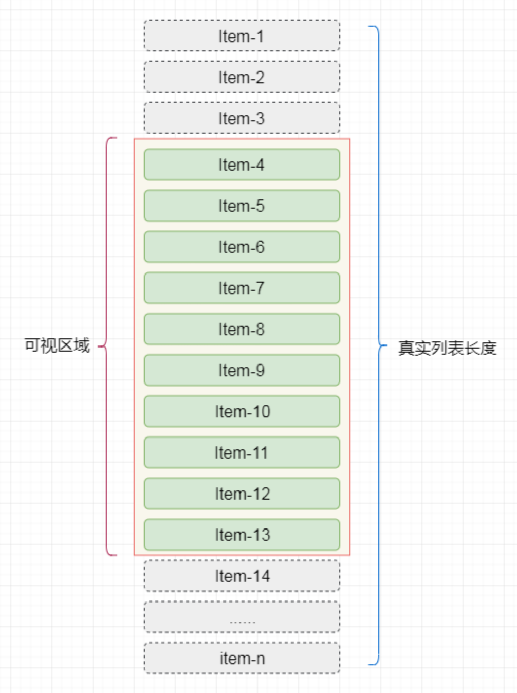 (从上图中我们可以发现实际用户每次能看到的元素/内容只有item-4 ~ item-13 也就是9个元素)
