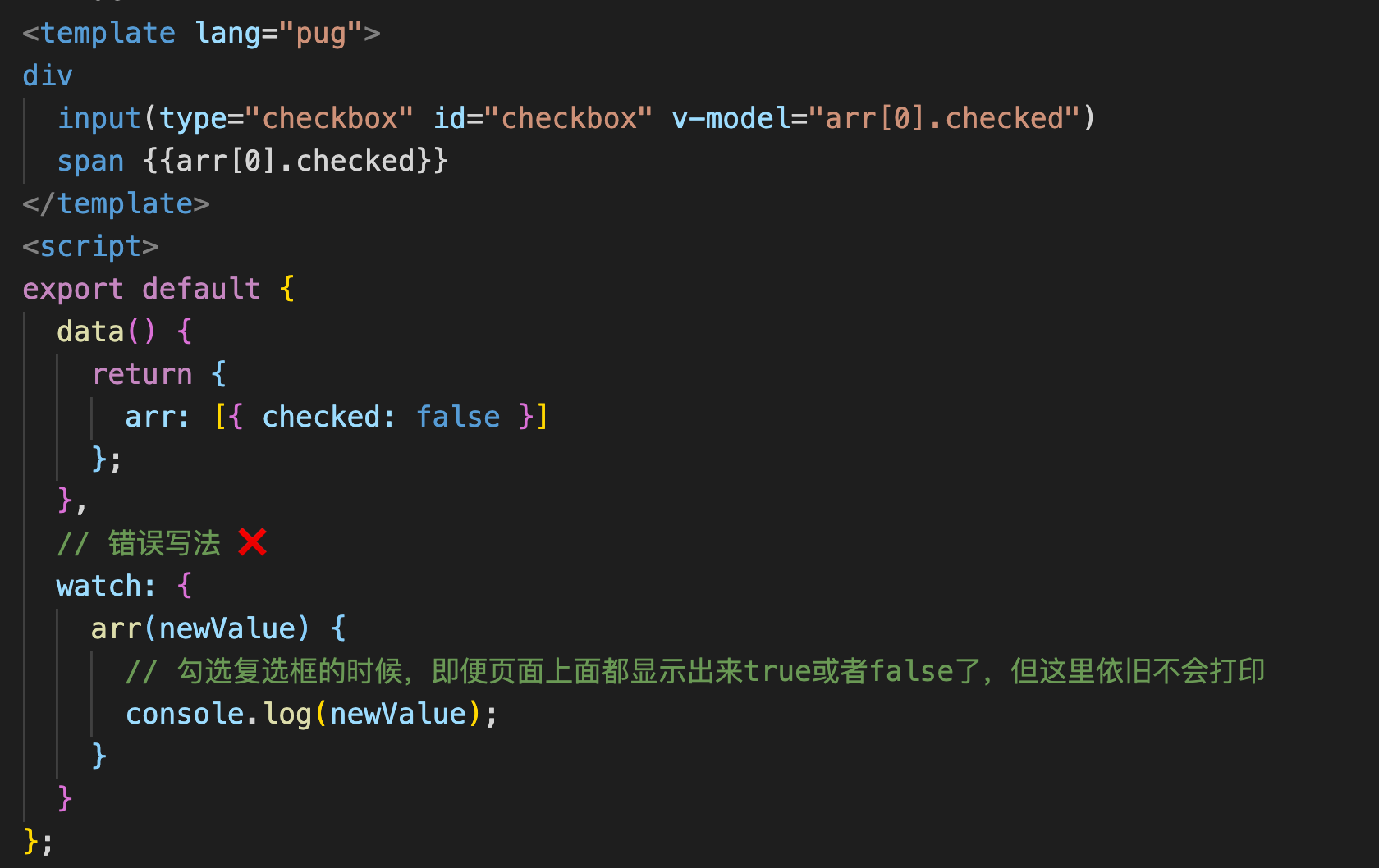 如果想同时检测两个属性,懒得一个个写的话,有个偷懒的法子用computed做中间层。