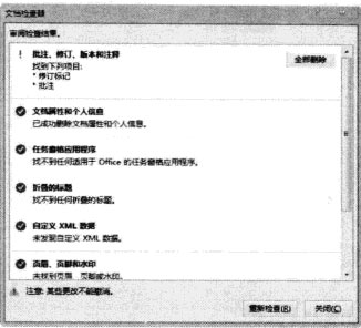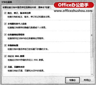 (2)打开“文档检查器”对话框,用户可以根据需要勾选相应的复选框,这里直接单击“检查”按钮开始检查,如图2所示。然后,Word文档检查器将开始对文档进行检查,如图3所示。