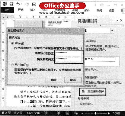 (5)在“3.启动强制保护”栏中单击“是,启动强制保护”按钮,在打开的“启动强制保护”对话框中设置保护方式。这里选择“密码”单选按钮,在“新密码(可选)”和“确认新密码”文本框中输人保护密码后单击“确定”按钮关闭对话框完成保护设置, 如图5所示。