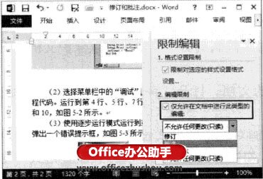 (3)在“2.编辑限制”栏中勾选“仅允许在文档中进行此类型的编辑”复选框,在其下的下拉列表中选择允许使用的编辑操作,如图3所示。
