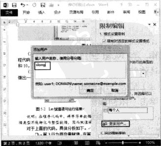 (4)单击“更多用户”链接打开“添加用户”对话框,在文本框中输入可以对文档进行编辑的用户的用户名,完成设置后单击“确定”按钮关闭对话框,如图4所示。