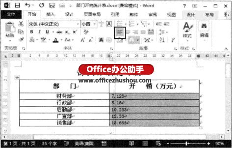 (1 )启动Word 2013,打开包含表格的文档。在表格中拖动鼠标选择所有需要对齐的数据,使这些数据在单元格中左对齐,如图1所示。