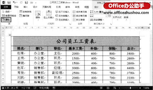 (2)拖动鼠标,框选作为表头的行。在“表格工具一布局”选项卡的“表”组中单击“属性”按钮,如图2所示。