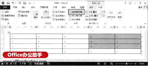 合并单元格就是将几个选择的单元格合成为一个单元格,拆分单元格就是将一个单元格分为若干个大小相同的单元格。在Word 2013中,使用“布局”选项卡下“合并”组中的命令按钮能够实现单元格的合并和拆分操作,下面介绍具体的操作方法。