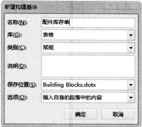 (3)打开“新建构建基块”对话框,在“名称”文本框中输入该表格的名称,其他设置项使用默认值,如图3所示。